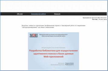Несколько слайдов из презентации (неофициальная версия) к бакалаврской работе по направлению "web-программирование" для общего ознакомления: