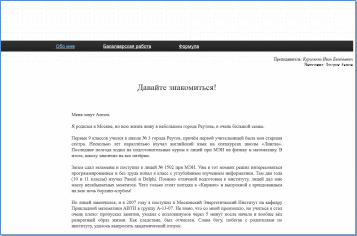 В данной лабораторной работе был написан простейший веб-сайт из нескольких html-страниц с краткой информацией обо мне и моей бакалаврской работе. На отдельной странице была размещена формула, указанная в задании.