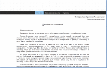 Несколько слов о моих увлечениях. За 21 год своей жизни успел попробовать несколько видов спорта: прыжки с парашютом, страйкбол, кикбоксинг и тяжёлую атлетику. Последние два года интересуюсь web-программированием: администрирую сайт группы, потихоньку пишу свой стартап и готовлюсь к экзамену на Zend Certified Engineer.