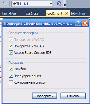Проверка страниц с помощью валидатора XHTML встроенного в Visual Studio