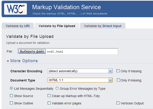 Проверка страниц при помощи валидатора страниц XHTML, предоставляемого консорциумом W3C