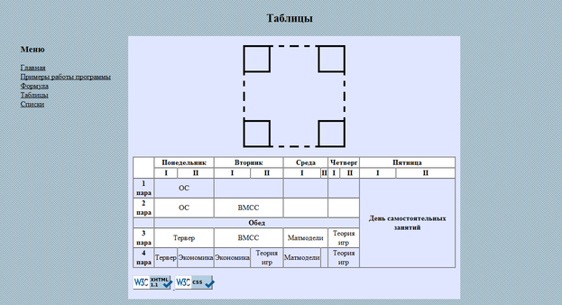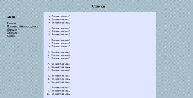 В рамках лабораторной работы была создана страница, содержащая таблицу из списка вариантов заданий (изображена справа), информационная таблица с объединением ячеек, выделением ячеек цветом, границей. Также была создана страница, содержащая несколько маркированных списков с различными типами маркеров, нумерованных списков с различными типами нумерации, маркированный список нумерованных списков.