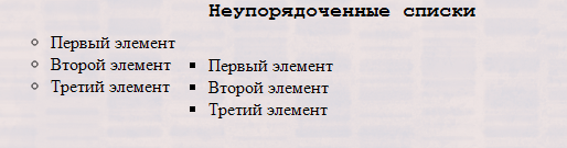 Разработать страницу, содержащую несколько маркированных списков с различными типами маркеров.