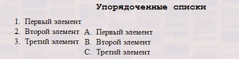 Разработать страницу, содержащую несколько нумерованных списков с различными типами нумерации.