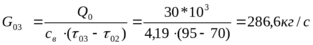 Расход сетевой воды, подаваемой на отопительные приборы: