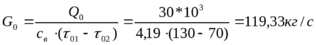Предварительно рассчитываем расход сетевой воды, поступивший в подогреватель горячего водоснабжения в расчетном режиме: