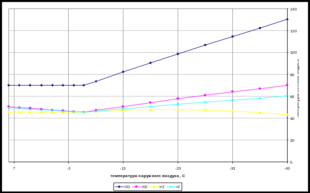 График изменения температур сетевой воды, идущей на горячее водоснабжение и отопление.