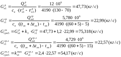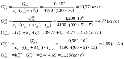 Для расчетного режима и летнего режима: