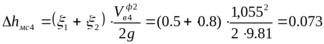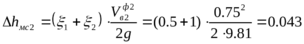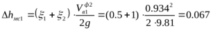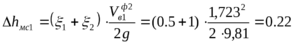 Потери напора на местных сопротивлениях: