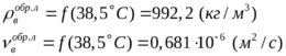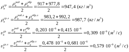 Определение средних значений для плотности и кинематической вязкости сетевой воды: