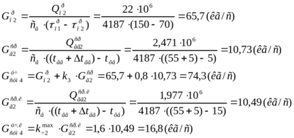 Определение расхода сетевой и водопроводной воды на горячее водоснабжение во второй зоне: