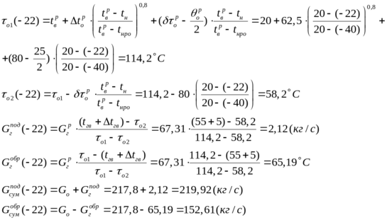 Таблица 3.5. Сводная таблица значений температур и расходов сетевой воды в подающем и обратном трубопроводах в зависимости от температуры наружного воздуха во второй зоне: