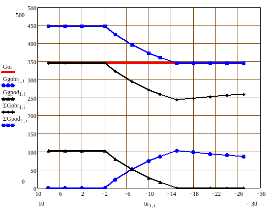 На рисунке 4 приведены графики изменения температур и расходов сетевой воды от температуры наружного воздуха.