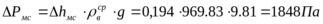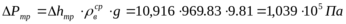 Суммарные потери давления в головной магистрали в расчетном режиме: