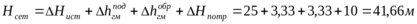 Суммарные потери напора в головной магистрали в расчетном режиме:
