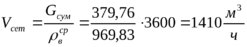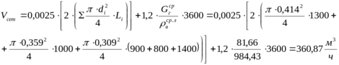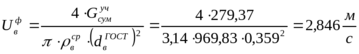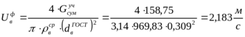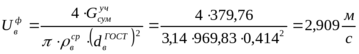 Вычисляем значение скорости сетевой воды на участке тепловой сети: