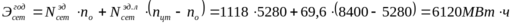 Суммарное годовое потребление электроэнергии всеми насосами: