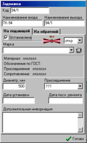 Форма паспорта объекта типа “Задвижка” состоит из двух основных страниц (закладок): “На подающей”, ”На обратной”. По своему составу эти страницы в точности копируют друг друга.