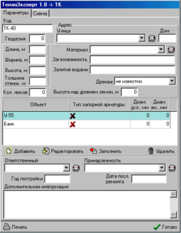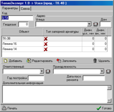 Паспорт “Теплового узла” практически идентичен паспорту “Тепловой камеры”. И весь процесс работы с данной формой ничем не отличается от вышеописанного. Единственное отличие паспортов – это отсутствие некоторых информативных полей в паспорте у “Теплового узла”.