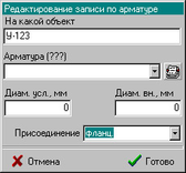 “Редактировать” - Вызывает рабочую форму для непосредственного занесения (редактирования) и прогнозирования потерь при изменении данных определяющих текущий вид прокладки.