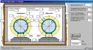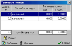 В комплексе реализован механизм подсчета тепловых потерь как по одному отдельному участку, так и по всей тепловой сети. Кнопка
