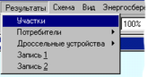 еню “Результаты” состоит из 5 пунктов: Участки, Потребители, Дроссельные устройства, Запись 1, Запись 2.