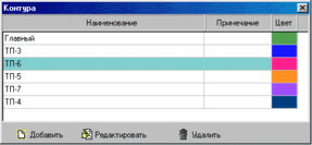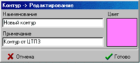 В появившейся форме укажите наименование создаваемого контура, примечание. Для выбора цвета, которым в дальнейшем будет отображаться контур на полотне схемы, щелкните мышкой по квадрату, расположенному под надписью “Цвет”.