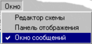 Пункт “Присоединяемое” позволяет окно сообщений разместить особым образом, так, что оно не будет закрывать окно отображения схемы. Для этого переместите окно в нижнюю часть экрана. Закрыть окно сообщений можно тремя способами: 1) повторно выбрать пункт “Окно сообщений” в пункте меню “Окно”; 2) в меню, вызываемом щелчком правой кнопки мыши в окне сообщений, выбрав пункт “Скрыть окно”; 3) нажатием на “крестик” в правой части заголовка окна сообщений (как любое стандартное окно в Windows).