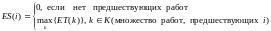 ES(i) - самый ранний момент, в который работа ti может быть начата;