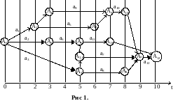На рисунке критические работы показаны жирными стрелками. В нашем примере критическими являются работы: а2, а3, а6, а7, а12. Каждая из “некритических” работ имеет временные резервы и может быть закончена с некоторым опозданием без того, чтобы это отразилось на сроке выполнения комплекса в целом.