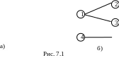 . На рис. 7.1 а) допустимыми множествами являются {1}, {1,2}, {1,2,3}, {1,2,4}, {1,2,3,4}. Множество {2,4} не является допустимым, так как работа 2 опирается на работу 1, не принадлежащую данному множеству.
