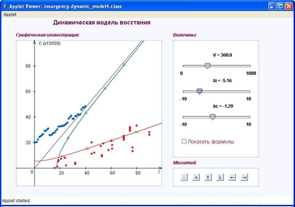 Подведем итоги - динамическая модель восстания задана системой следующей одновременных уравнений: