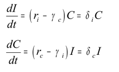 Таким образом, в первом уравнении, повстанческие нападения I увеличиваются в течение долгого времени из-за присутствия коалиции C, если показатель вербовки повстанцев превышает повстанческие потери из-за боевой эффективности коалиции. Так же для второго уравнения, размер коалиции увеличивается в течение долгого времени для данного числа повстанческих нападений, если норма вербовки коалиции превышает потери коалиции. Данная система может быть записана так:
