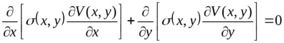 где V(x, y) – скалярный электрический потенциал (В), σ – электрическая проводимость (См/м).