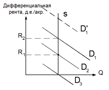 Спрос на землю D включает в себя сельскохозяйственный Dсх и несельскохозяйственный спрос Dнесх.: D = Dсх + Dнесх.
