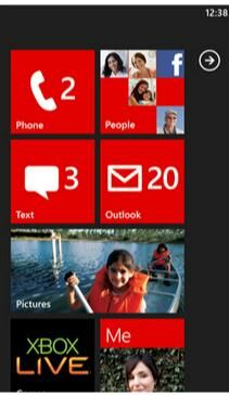 I’ll have to start with the tiles. Tiles make up the typical user interface list selection visual metaphor in a Metro app. When a view has to display a list of selectable items to the user, it can use tiles. This is sometimes a substitute for a conventional ListBox and sometimes a substitute for menu selections. You can use a grid of Metro tiles to display options to which a user can navigate and expand on for more detailed views. For this reason, the tiles have the ability to become alive. You can see live tiles in both WP7 and Windows 8 on their home pages. Home screen tiles in both of these operating systems have the ability to not only display a bit more information about what’s behind them, but also to actively change in content appearance when any information for which they are responsible changes. For example, the Mail tile on WP7 shows you how many unread emails you have and should a new one come in, the tile updates. The Photo tile may show you a preview of the first photo in the first album, and so on. Figure 2 shows a Windows Phone 7 home screen illustrating what I’ve explained.