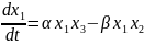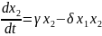 Система дифференциальных уравнений показывает, что присутствие красной силы понижает размер синей силы, а присутствие синей силы понижает размер красной силы через боевые потери.