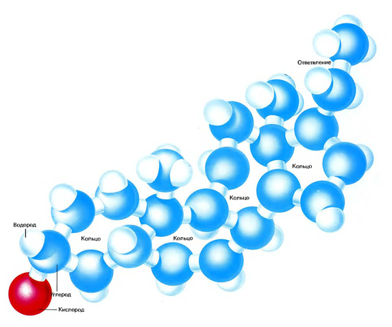 Модель стероидной молекулы. Гормоны – это либо протеины или протеиновые производные, либо стероиды. К стероидам относятся половые гормоны и гормоны, выделяемые корой надпочечников. Все стероиды имеют одинаковую молекулярную структуру и конфигурацию. Молекула стероида состоит из атомов кислорода, водорода и углерода; молекулы соединяются в структуру с 17 атомами углерода, организованными в четыре соединенных между собой кольца.