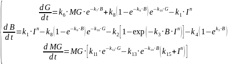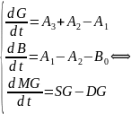 Таким образом, простейшая математическая модель изменения концентрации гормонов в условных железах может быть представлена в виде трех дифференциальных уравнений: