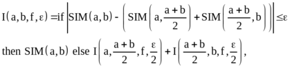 где SIM(x, y) – функция вычисления значения интеграла на отрезке [x, y] с использованием формулы Симпсона.