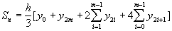 аходится методом Симпсона (парабол). Отрезок [a, b] разбивается на n=2m частей x0 =a, x1 =a+h, ..., xn =b с шагом h=(b-a)/n. Вычисляются значения yi = F(xi ) функции в точках xi и находится значение интеграла по формуле Симпсона: