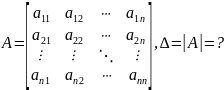 В частности, формула вычисления определителя матрицы