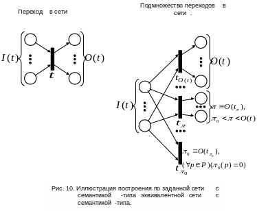 сопоставляется подмножество переходов, окрашенных так же, как и исходный переход в сети