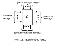 - переключатель (в некоторых работах без потери принципиальных возможностей полагают, что для переключателей