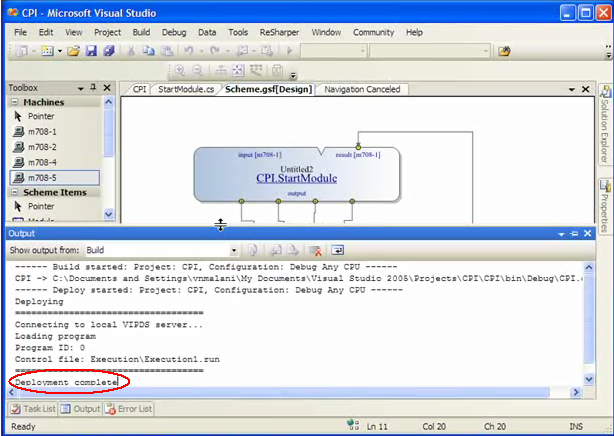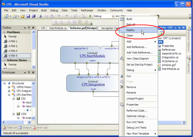 27. Для просмотра компиляции и развертывания программы на кластере в окне Solution Explorer нажать правой клавишей по проекту CPI и выбрать в контекстном меню Deploy.