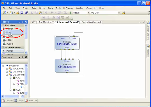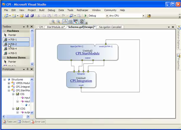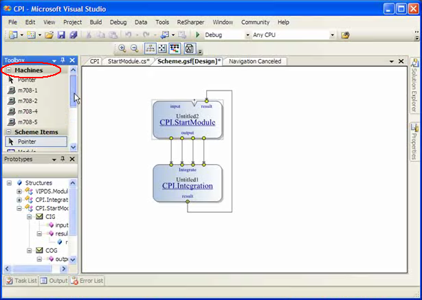 24. Аналогично перетащить следующую машину в группу входов result модуля CPI.StartModule.