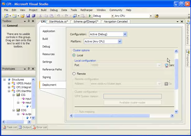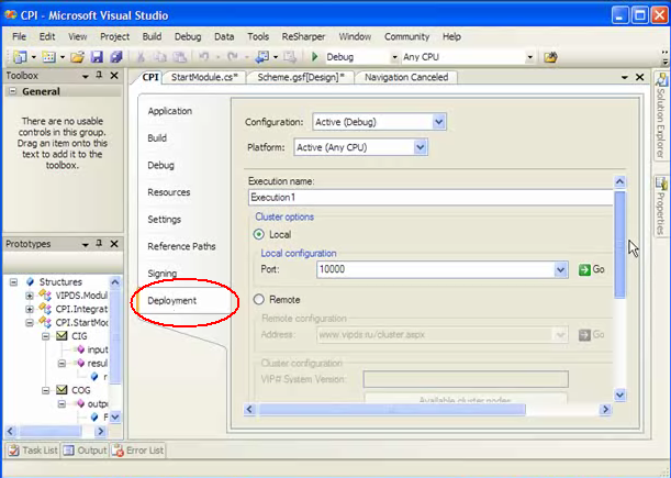 17. В появившемся окне свойств проекта CPI выбрать вкладку Deployment.