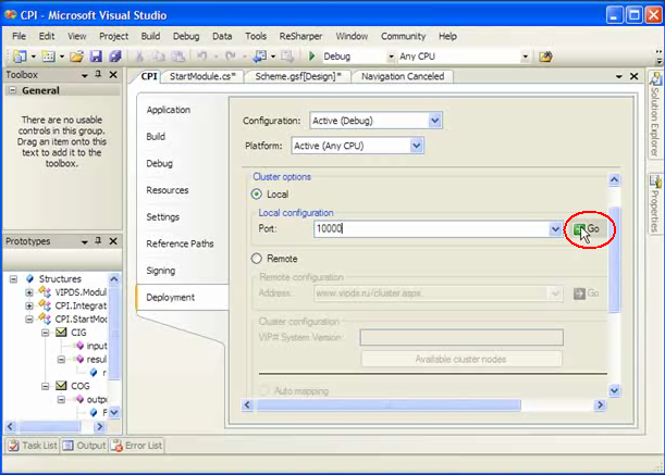18. Во вкладке Deployment в группе Cluster Options выбрать опцию Local и нажать кнопку Go.