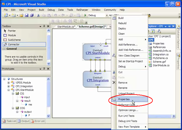 16. Кликнуть правой клавишей мыши по проекту CPI и выбрать в контекстном меню Properties.