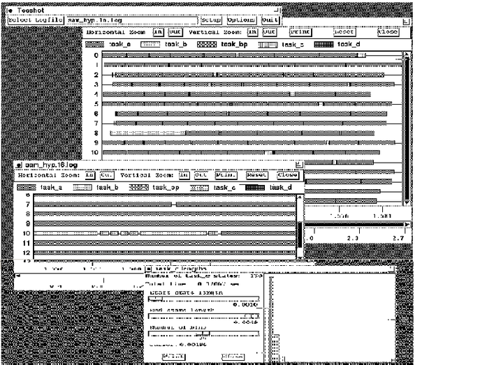 for (i=0; i if (i==rank) continue; MPI_Irecv(buf[i], count, dtype, i, 0, comm, &requests[j++]); } MPI_Waitall(size-1, requests, statuses); Предположим, что одна из итераций с вызовом MPI_IRECV не завершилась перед следующей итерацией цикла. В этом случае, MPI пробует выполнить оба запроса. Это может продолжаться, приводя к большему времени ожидания. Чтобы избежать этого, можно переписать эту часть кода так: j = 0 for (i=0; i if (i==rank) continue; MPI_Recv_init(buf[i], count, dtype, i, 0, comm, &requests[j++]); } MPI_Startall(size-1, requests); MPI_Waitall(size-1, requests, statuses); В этом случае все итерации с вызовом MPI_RECV_INIT выполняются только один раз при вызове MPI_STARTALL. При таком подходе вы не получите дополнительного времени ожидания при использовании MPI_Irecv и может улучшить латентность приложения. 3.8.2 Выбор подпрограмм/функций MPI Для достижения наименьшей латентности и наибольшей пропускной способности сообщений для синхронной передачи "точка-точка", используйте блокирующие функции MPI MPI_Send и MPI_RECV. Для асинхронной передачи, используйте неблокирующие функции MPI MPI_Isend и MPI_IRECV. При использовании блокирующих функций, старайтесь избегать ожидающих запросов. Для задач требующих использования коллективных операций, используют соответствующую коллективную функцию MPI. 4 Входные и выходные данные 4.1 Этапы создания программ Создание параллельной программы состоит из следующих этапов: последовательный алгоритм подвергается декомпозиции (распараллеливанию), т.е. разбивается на независимо работающие ветви; для взаимодействия в ветви вводятся две дополнительные нематематические операции: прием и передача данных; распараллеленный алгоритм записывается в виде программы, в которой операции приема и передачи записываются в терминах конкретной системы связи между ветвями; полученная таким образом программа компилируется и компонуется с библиотеками среды параллельного программирования при помощи компилятора, используемого на данной системе для получения машинно-зависимого кода. 4.2 Компиляция модулей Для компиляции и сборки программного модуля, написанного на С, используется команда mpicc. Аналогично для С++ используется команда mpiCC, для Fortran 77 используется mpif77, а для Fortran 90 – mpif90. Все команды пакета MPICH for GM настроены на использование компиляторов фирмы Compaq. Эти команды предусматривают некоторые опции и подключают специальные библиотеки, необходимые для компиляции и сборки программ MPI: опция -с указывается для выполнения только компиляции файла, не создавая объектный файл; при задании опции -о осуществляется сборка и компиляция, а также создается объектный и запускаемый файлы. Примеры 1 Компиляция программного модуля myprog.c mpicc –c myprog.c 2 Сборка и компиляция программного модуля myprog.c с созданием выходного файла myfile mpicc myprog.c –o myfile 4.3 Запуск программ, использующих MPI Запуск на исполнение MPI-программы производится с помощью команды: mpirun –np [-h –maxtime –quantum -stdiodir] [параметры_программы...] Параметры команды mpirun слелующие: параметр -h используется для выдачи интерактивной подсказки по параметрам команды mpirun; параметр -np обозначает число процессоров, требуемое программе; параметр -maxtime задает максимальное время счета. От этого времени зависит положение задачи в очереди. После истечения этого времени задача принудительно заканчивается; параметр -quantum указывает, что задача является фоновой, и задает размер кванта для фоновой задачи; параметр -stdiodir задает имя каталога стандартного вывода, в 